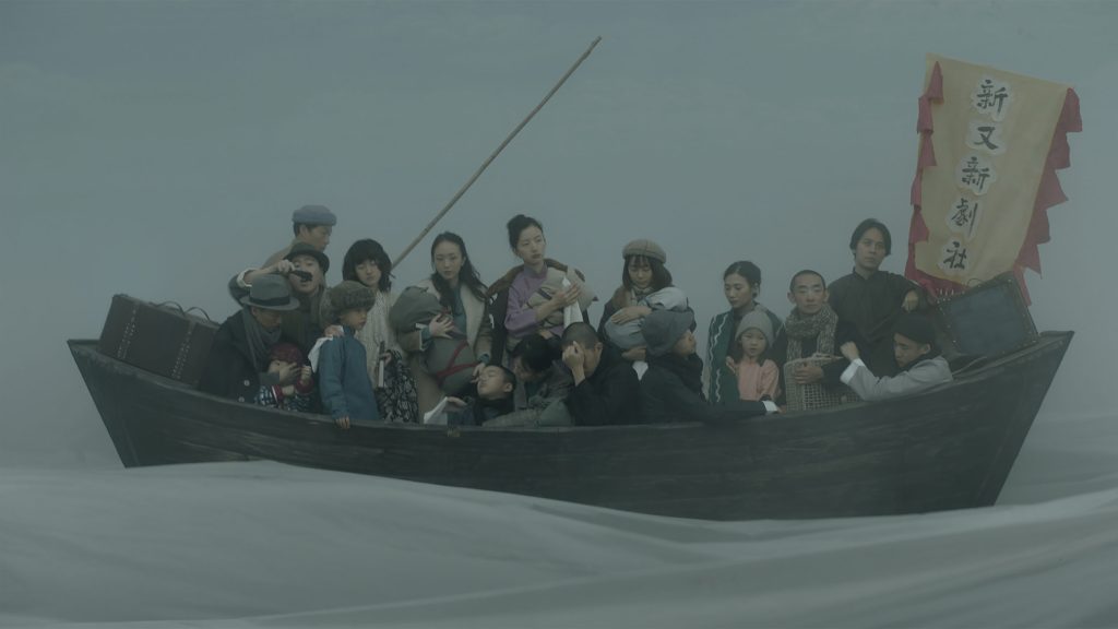 Des femmes et des hommes en uniforme, armes à la main, gravissent un semblant d’escalier, manifestement sans fin. À chaque fois que la caméra se concentre sur le groupe, un membre succombe, sous les coups d’un ennemi invisible, hors-champ. Une façon comme une autre pour le réalisateur de présenter les conflits qui ont affecté la Chine, entre guerre civile et opposition avec l’extérieur au cours du vingtième siècle. Et comment ces événements ont modelé cette nation à l’échelle continentale, la conduisant tout doucement vers un régime totalitaire.