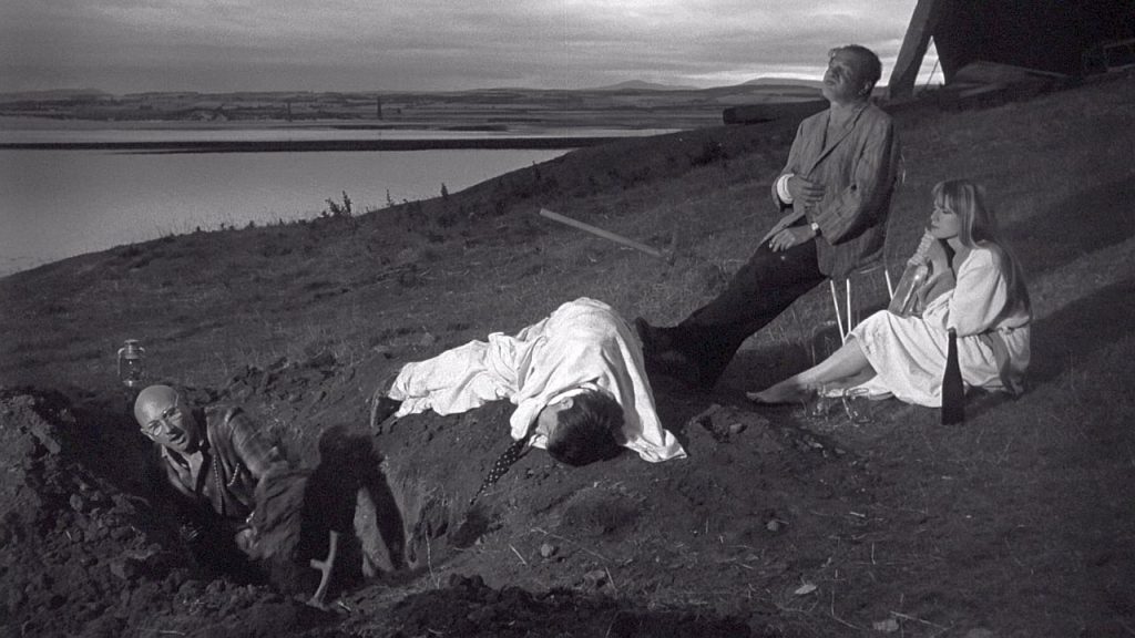 Cul-de-sac un titre qui s’accorde fort bien à ce long-métrage tant il souligne l’impasse à laquelle sont confrontés les protagonistes tant d’un point de vue locatif que sur le plan des événements. Ici, Polanski s’amuse à superposer les divers degrés de narration, de focalisation pour mieux bâtir un édifice étrange, sordide au milieu de cette gigantesque demeure vétuste, prison dorée aussi bien pour les occupants que pour les derniers arrivants. Ajoutez à cet endroit unique un couple marqué par la différence d’âge, un mari cocu, une conjointe qui s’ennuie ferme et deux gangsters pathétiques en cavale. Les éléments mis en place, ladite farce peut débuter.
