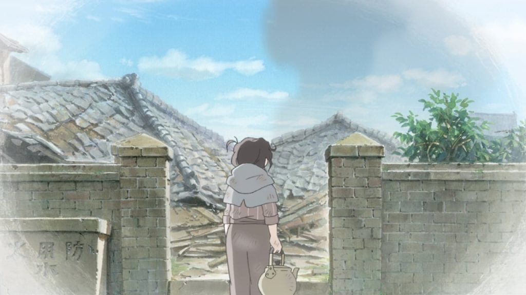 La guerre ce n’est tout d’abord que des navires ancrés au port, puis des enterrements occasionnels. Puis vint l’époque des alertes, des bombardements, du deuil et enfin l’apocalypse… Takabuchi magnifie son récit aussi bien par sa maîtrise de la temporalité que de l’intérêt dénué de toute condescendance pour chaque personnage, chaque détail les concernant, chaque activité anodine… Par moments, l’œil d’Ozu semble se poser sur les événements et l’ombre du metteur en scène plane derrière la caméra. Le lyrisme dont il fait preuve atteint son paroxysme quand Suzu voit ses certitudes s’effondrer en une fraction de seconde… les regrets, la douleur, tout ce qu’on a perdu et que l’on perdra se confondent via des plans d’une cruauté saisissante.