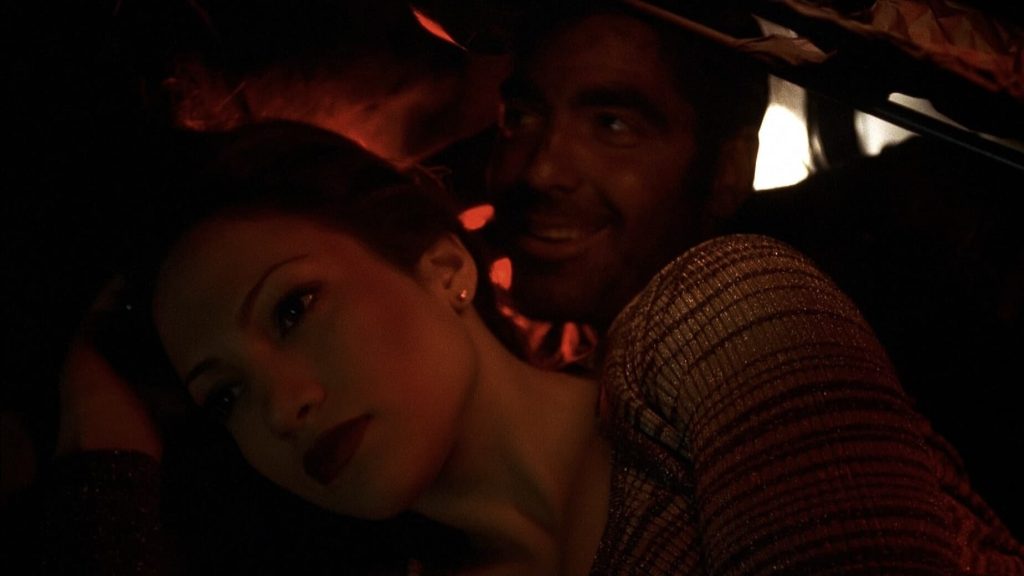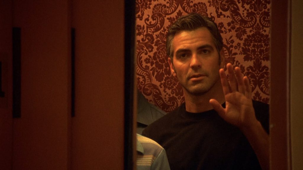 Un couple réuni par les circonstances se retrouve coincé dans le coffre d’une voiture. Un chat et une souris, ou plutôt une policière et un voleur. Ce dernier s’est saisi pour quelques heures de son prédateur. Une conversation s’enclenche au gré du parcours, répliques à peine réelles dans une telle situation. L’approche tactile forcée de l’un ne semble guère gêner l’autre partie. Soderbergh pose à la fois les bases d’une rencontre à mi-chemin entre le film noir et la comédie romantique, dans des conditions certes ubuesques, mais également de ses prédispositions à construire et déconstruire le cadre spatial à l’écran.