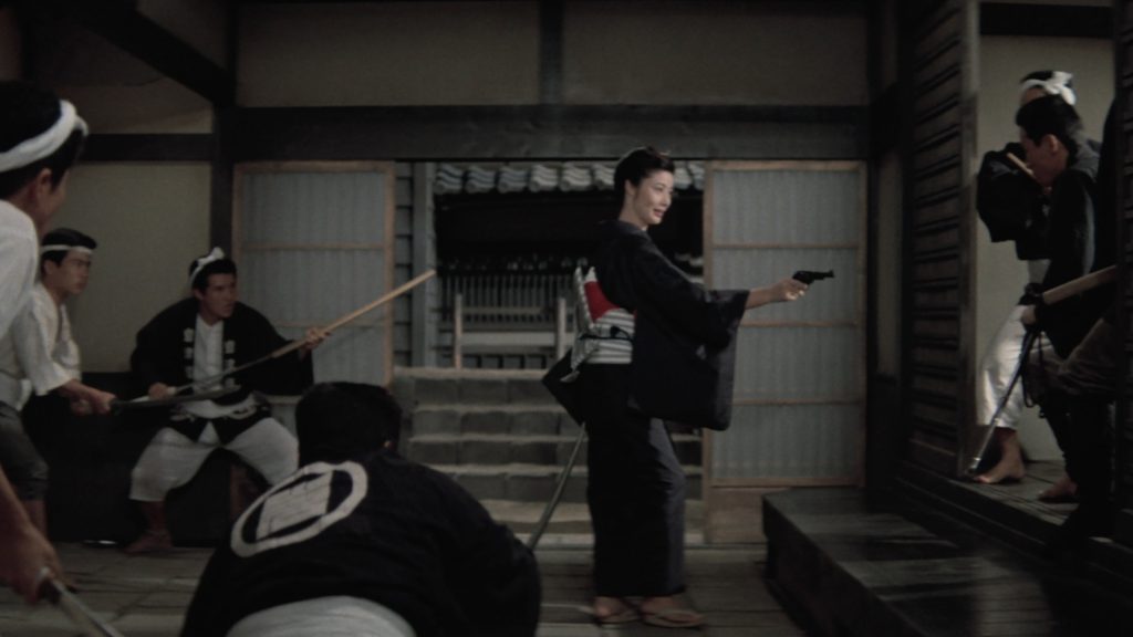 Certes, elle exige à celles et ceux qu’elle croise sur son chemin de la considérer comme un homme. D’ailleurs, durant ces instants, on décèle une posture dénuée de finesse et le discours clamé haut et fort perd de fait aussi bien en intensité et en virulence. Toutefois, il n’existe que pour dissimuler les intentions du cinéaste, faussement campé sur ses positions, à l’instar de son personnage. Contrairement à une matrone entièrement vouée à son clan, quitte à sacrifier son fils unique, Oryu se distingue de ses adversaires, ne négligeant jamais ses valeurs, montre de la compassion et s’affranchit des règles en vigueur. Plus honorable qu’un samouraï déchu, elle prouve à maintes reprises qu’elle n’a rien à envier au sexe dit fort. Quand la vengeance se substitue à la raison, elle renoue avec des vertus humanistes qui vont au-delà d’une logique typique masculine ou féminine.