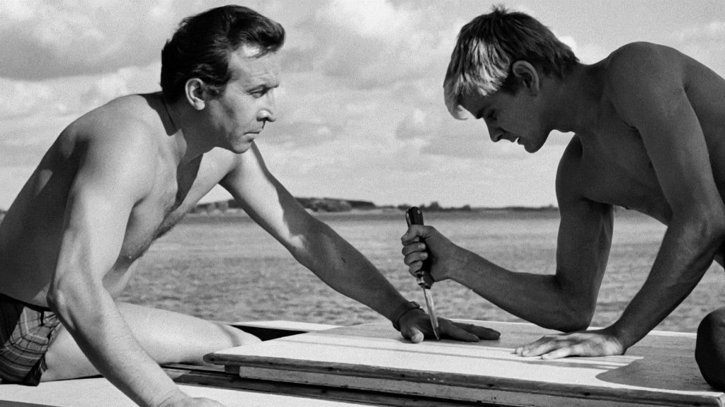 Cette atmosphère nauséabonde s’amplifie naturellement aussi bien au rythme des défis (se hisser en haut du mat, s’amuser avec le couteau, jeu de société) que par le huis clos imposé, le choix du voilier comme lieu principal se révélant judicieux. Il faut alors souligner le contraste saisissant entre la tension palpable présente sur le bateau et la quiétude des vastes étendues maritimes environnantes. Un terrain de lutte idéal donc pour les deux coqs avides de s’emparer ou au contraire de conserver ce précieux couteau, symbole phallique ultime.