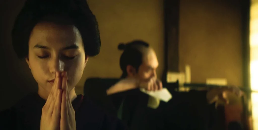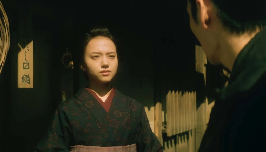 Femme enfant au caractère bien trempé, elle s’efface dans cet univers d’hommes et s’impose en icône tragique du long-métrage, sacrifiée sur l’autel de l’ambition ou de la raison. Le sort qui lui est destiné rappelle celui de la sœur du réalisateur Kenji Mizoguchi (vendue par son père à une maison close) et interpelle sur la condition de toutes celles sous l’emprise du potentat local, patriarcal ou matriarcal. Cette thématique déclinée sur l’enjeu central aurait d’ailleurs mérité un développement plus conséquent. Et ce regret soulève un problème narratif évident.