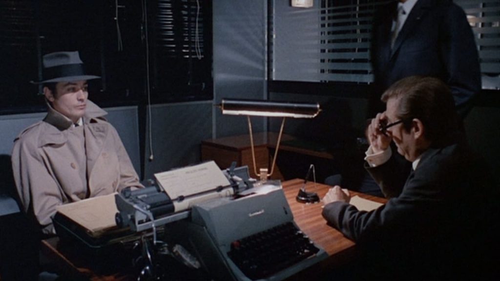 Quant à Costello, il exerce l’unique activité pour laquelle il semble être né, mais toujours avec ce flegme et cette grâce quasi inhumaine. Le magnétisme d’Alain Delon transpire dans chaque plan et insuffle l’essence macabre à cet assassin insaisissable. Telle la faucheuse, Jef Costello frappe sans pitié, avec calme et détermination, sans éprouver ni haine ni remords, juste le sentiment d’un devoir accompli. Melville sublime la première exécution dans ce bureau exigu, qui devient de fait, l’antichambre de la mort pour une victime loin d’être innocente. Melville en profite pour mettre en lumière les détails sordides propres aussi bien aux milieux interlopes ou aux méthodes pas toujours éthiques de la police.