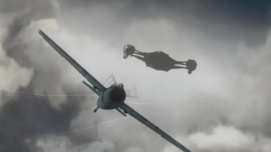 Cet approche assez malicieuse est de nouveau adoptée dans Killer of Killers, puisque Dan Trachtenberg décide de se concentrer sur trois combattants issus d’ères très différentes ; une matrone viking, un apprenti samouraï devenu ninja et un mécanicien de la marine américaine lors de la Seconde Guerre mondiale, reconverti en pilote, en raison d’une débâcle infligée par l’une des créatures. Afin d’esquisser leur portrait, le cinéaste raconte chacune de leurs mésaventures successivement, à l’aide de sketches.