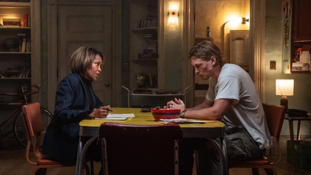 Hélas, tout sonne creux et faux, tandis que l’unique remède aux maux de son protagoniste consiste en un enchaînement de mises à mort en règle. Les cadavres s’amoncellent sur le passage de Hank et ce n’est pas le regard cynique de Darren Aronofsky ou d’un chat à moitié domestiqué qui suscitera de l’empathie pour les victimes, y compris celles innocentes. Seul bon point de ce naufrage, les présences d’Austin Butler et de Zoë Kravitz, interprètes magnétiques à défaut d’être magnifiques. Pour le reste, les rebondissements artificiels louchent furieusement du côté de l’oublié C’est pas mon jour, ce qui renforce le côté mal aimable de l’ensemble.