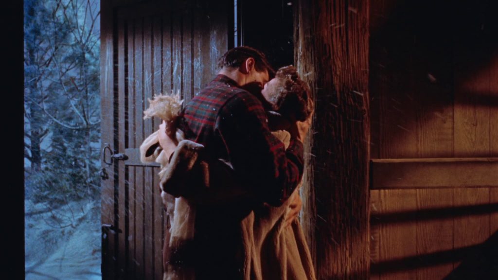 Puis vient l’hiver et les interrogations d’usage, Sirk pose alors son histoire et développe peu à peu les enjeux larvés depuis le début. Il finit l’ébauche d’une toile de fond opposant une cité urbaine oppressante à des espaces verts et blancs synonymes de liberté, apanages environnementaux respectifs des deux amants. Dans le cadre d’un Noël aux allures morbides, survient sans doute le plus beau plan du film où l’image rejoint les mots témoins d’une situation.